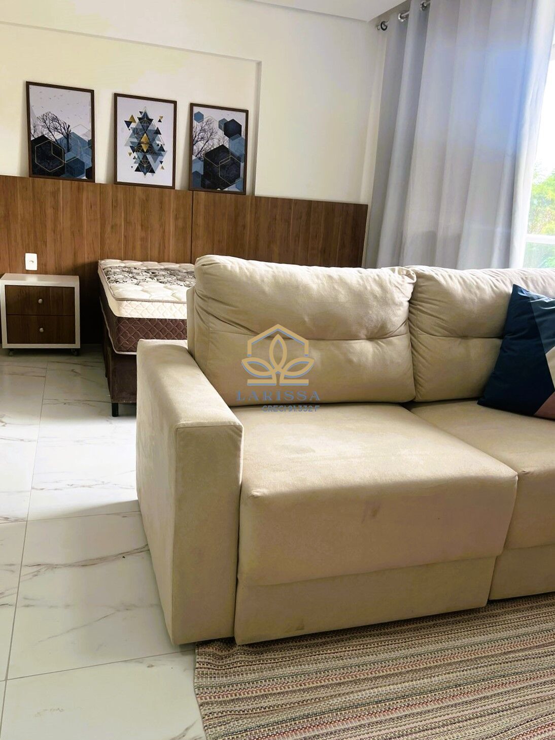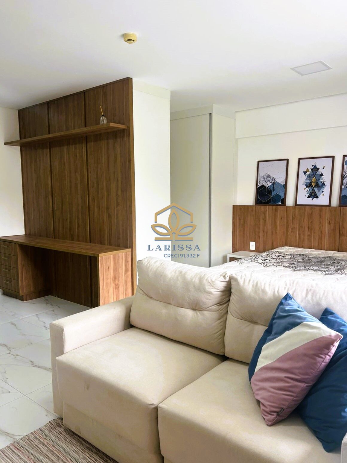 Línea, apartamento Studio com 48m², totalmente mobiliado com sofá, cama, colchão, armários embutidos, fogão, geladeira, todo equipado para seu conforto e praticidade.